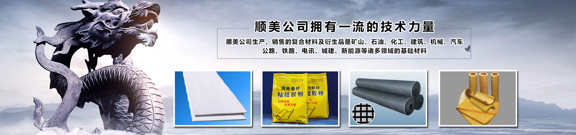 新疆順美新材料有限公司,是成都順美國際貿(mào)易有限公司駐新疆的分公司。順美國際貿(mào)易有限公司(以下簡稱順美公司)成都總部成立于1998年,分公司成立于2008年。是一家科技型研發(fā)、生產(chǎn)及國內(nèi)國際貿(mào)易型企業(yè)。公司主要以研發(fā)、生產(chǎn)、銷售各種新材料、化工、建材、防水、防腐、防火、保溫材料、土工材料、橋梁加固材料及國際國內(nèi)貿(mào)易為主。公司下屬員工二百余人,并擁有一支具有高素質(zhì)從事新材料、化工、建材及國際貿(mào)易數(shù)十年經(jīng)驗的研發(fā)、生產(chǎn)和銷售團隊!順美公司擁有好的技術力量,嚴格的質(zhì)量檢驗標準和先進的生產(chǎn)設備,實行科學化的管理,產(chǎn)品擁有自主知識產(chǎn)權,涵蓋多項國家專利,并嚴格按照標準進行生產(chǎn)、加工和銷售。順美公司生產(chǎn)、銷售的復合材料及衍生品是礦山、石油、化工、建筑、機械、汽車、公路、鐵路、電訊、城建、新能源等諸多領域的基礎材料。順美公司經(jīng)過多年的累積和發(fā)展,現(xiàn)已建立完善的研發(fā)、生產(chǎn)、銷售一條龍服務體系,在產(chǎn)業(yè)鏈銜接、技術、服務、物流、人才聚集等方面成效顯著...